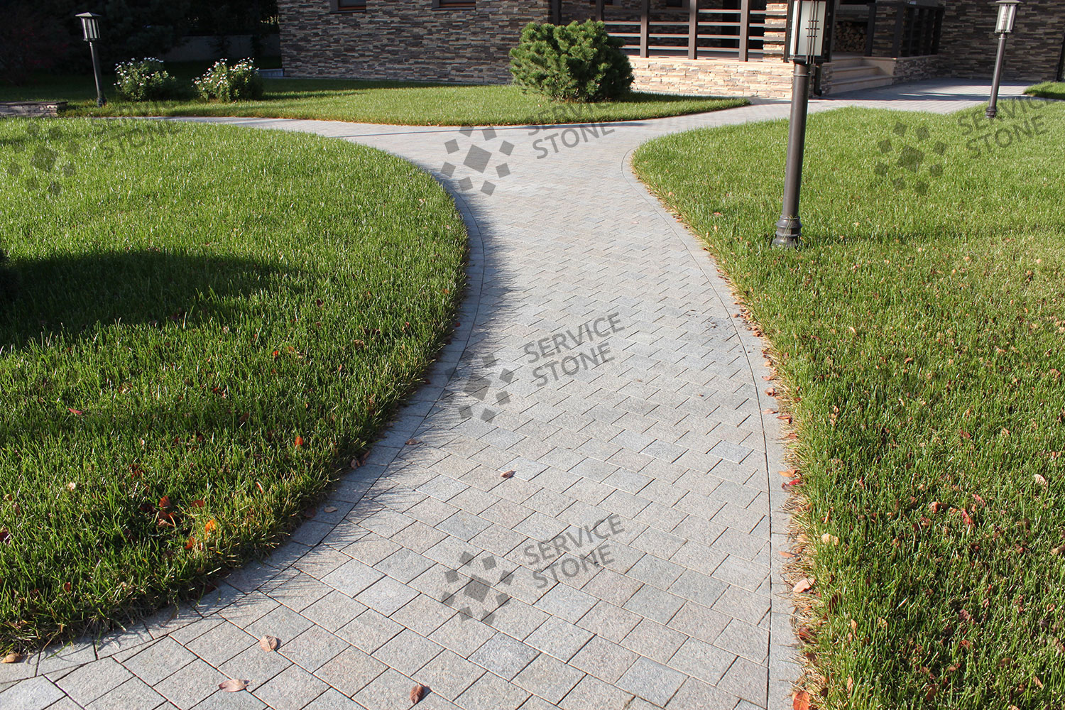 Бруски из одной партии одинаковы по форме, цвету и размеру. Материал может использоваться для мощения пешеходных и проезжих дорог, аллей, патио, площадей.