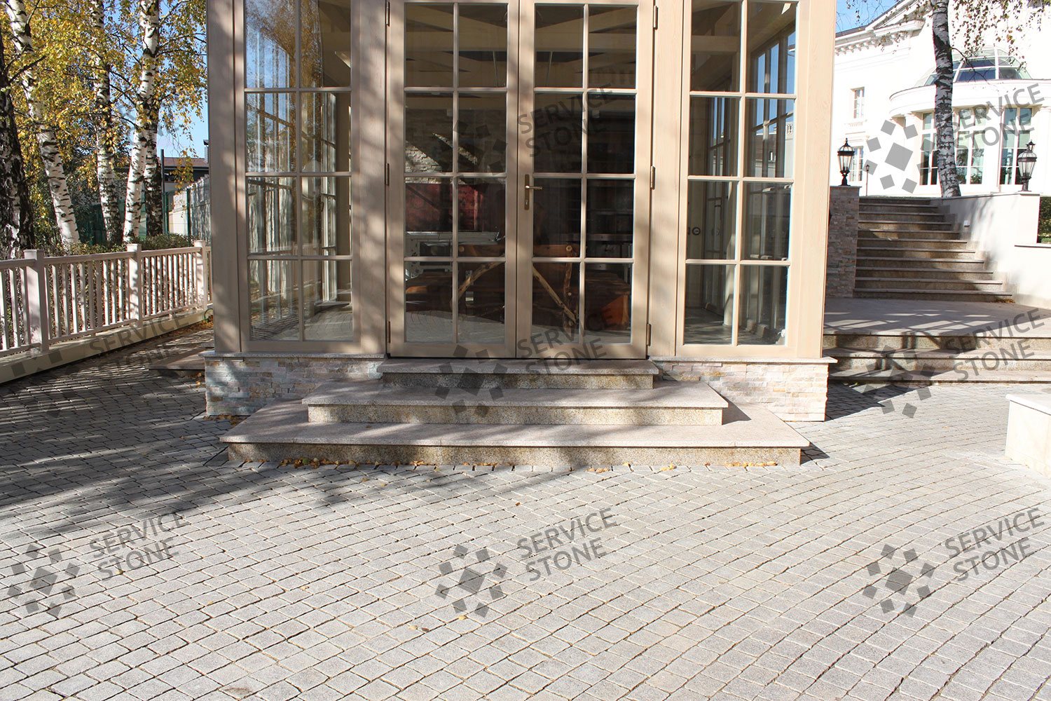 Мы производим колотую, пилено-колотую, полнопиленную и галтованную брусчатку. Первый вариант наиболее доступен, поскольку прост в изготовлении и не требует дополнительной обработки.